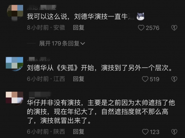 作为昔日的"四大天王",刘德华始终不忘初心,日复一日地磨炼演技,近年来他参演的电影大多获得了很好的口碑,希望他能保重身体,才能为我们带来更多好作品!