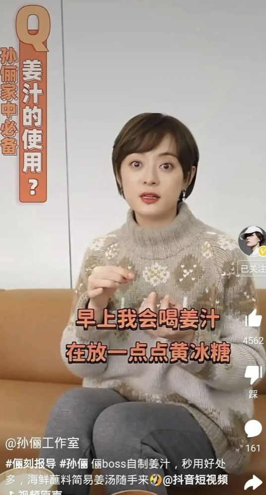 比如孙俪早上还要喝姜汁配黄冰糖。