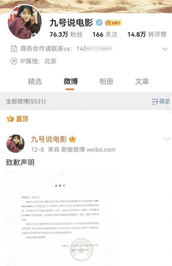 近日,历时三年的江一燕名誉维权案也终于公布了案件的最新进展:原告江一燕胜诉。其曾发布3条不实言论和侮辱性内容,对江一燕造成严重的负面影响,法院判其道歉并赔偿6万人民币。