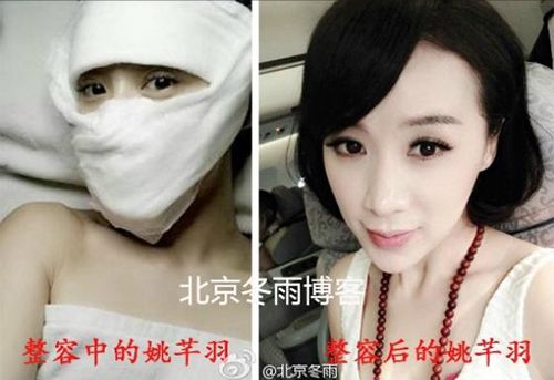 2014年,"北京冬雨"曝光了一组疑似姚芊羽脸缠纱布的手术照,后来她的样子确实变了很多。
