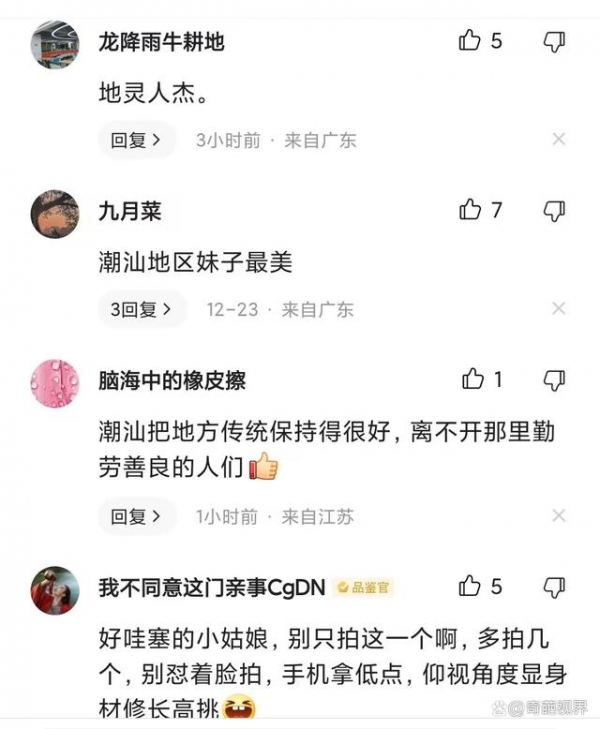 也有网友评论说,广东水灵美女,潮汕第一,厅堂厨房文武双全,全国出了名的。