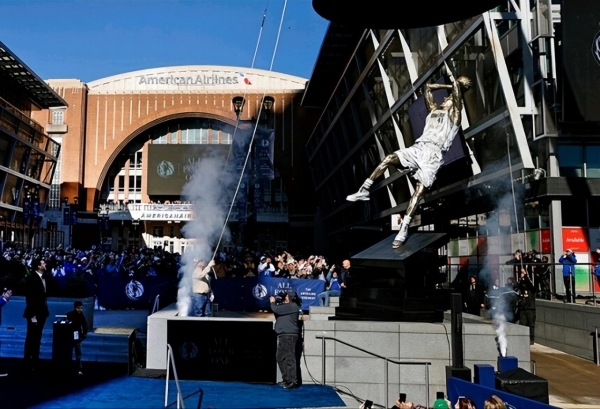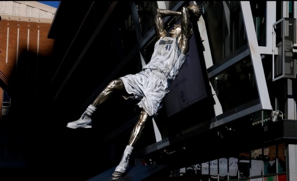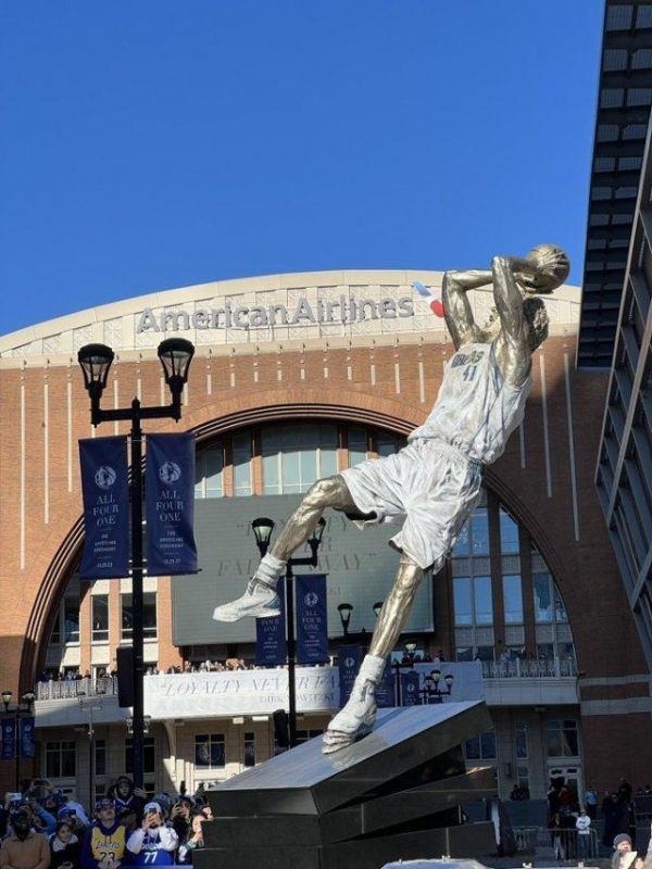 北京时间12月26日,在年终大战这一天,达拉斯独行侠为诺维茨基打造的雕像正式揭幕。它矗立在美航中心门口,那是一座高达7米的青铜雕像,造型正是这位名人堂球员的招牌动作:金鸡独立式的后仰跳投。