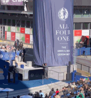 在一群球员和球迷面前,独行侠老板马克-库班主持了揭幕仪式。"三、二、一!"库班喊道。在一阵欢呼和音乐声中,巨大的幕布升起,露出了诺维茨基雕像的真容。诺维茨基本人、他的接班人东契奇以及德克的前队友马里昂的人参加了仪式。