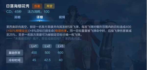 跳跃高空并锁定敌人发射五发飞弹,飞弹附带目标已损生命值,血量越低伤害就越高,用来收割效果不错。