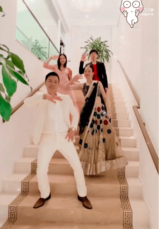 就在近日,甄子丹还在其社交账号上公布了一家四口的温馨日常,只见他和妻儿盛装打扮,四人一起在楼梯上跳起了印度舞蹈,十分欢乐的样子。