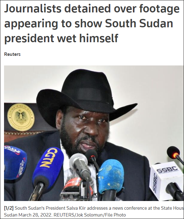 南苏丹记者联盟主席帕特里克·奥耶特(Patrick Oyet)透露,这6名在南苏丹国家广播公司工作的记者于1月3日及4日被警方拘留,他们"被怀疑知道总统小便的视频是如何泄露的"。这些人包括一名摄影师,一名视频剪辑师,及两名设备控制室的工作人员等。