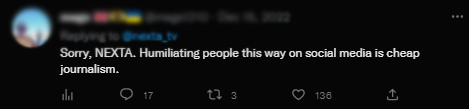 "在社交媒体上以这种方式羞辱他人,是可耻的新闻报道。"