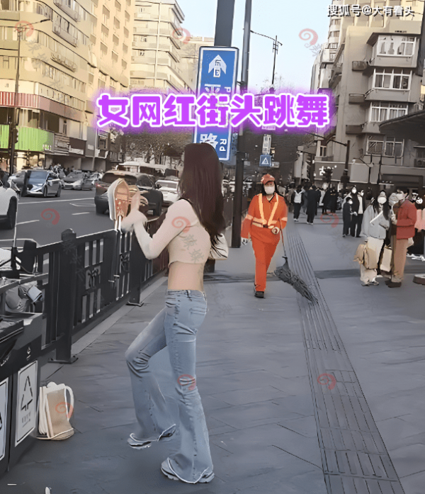 视频拍摄者表示,当时的气温是零下七八度,女子穿着露脐装在跳舞,路过的路人纷纷投来奇特的眼光,而旁边一名扫地的大妈却不以为然,觉得女子和她的工作没有什么不同,扫地阿姨说"我经常看到有人在路边直播,我只是把她们当作一块石头或者一片落叶"