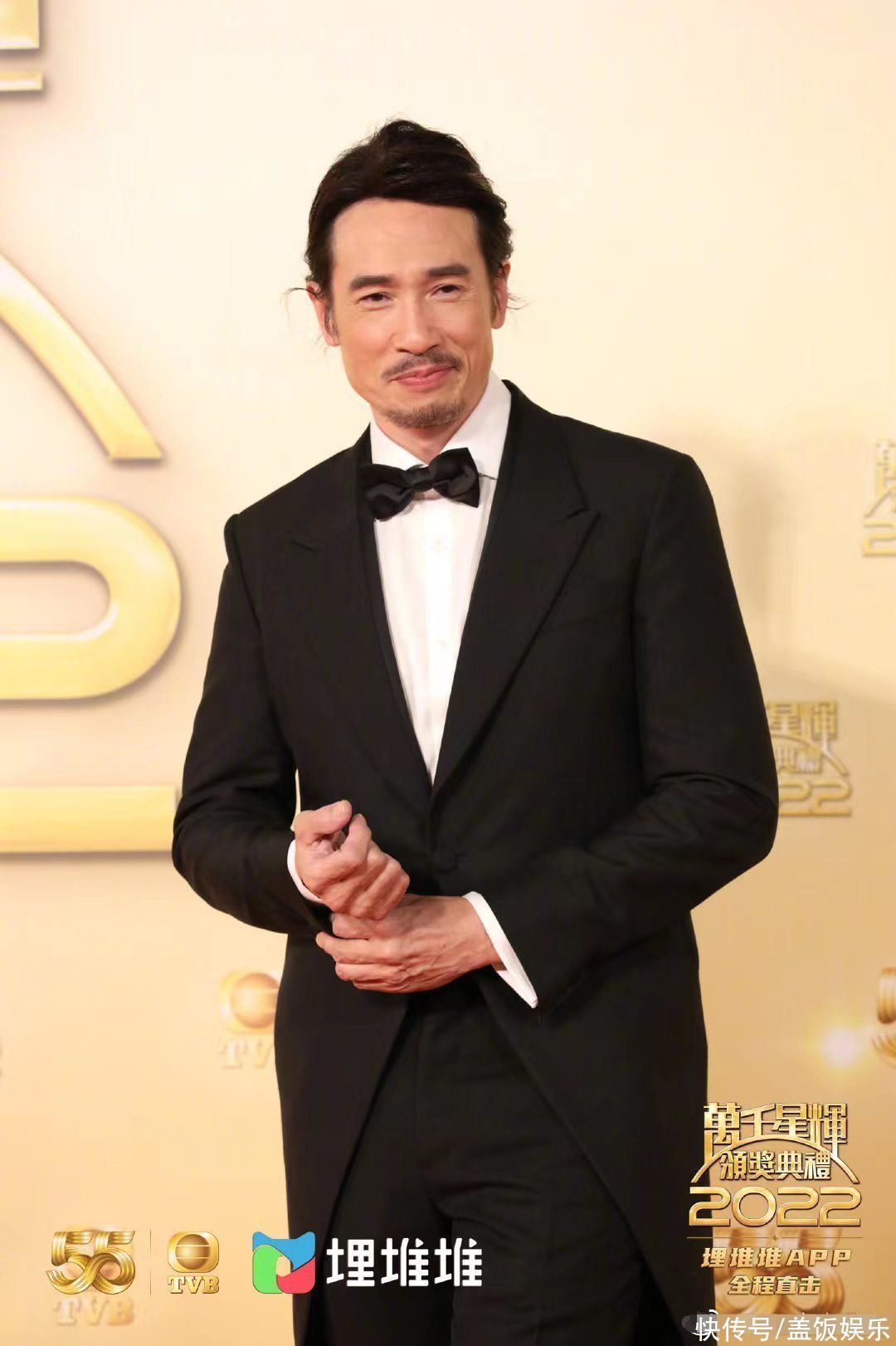 陈豪则穿着简单的黑白配色燕尾礼服,看起来文质彬彬,很有书生气。他将胡子留长了,眉眼之间更有男人味。陈豪是香港著名男演员,凭借《秀才遇着兵》、《溏心风暴》、《公主嫁到》三度夺得我的至爱男主奖,看来他所参演的角色一定受到了不少观众的喜爱。