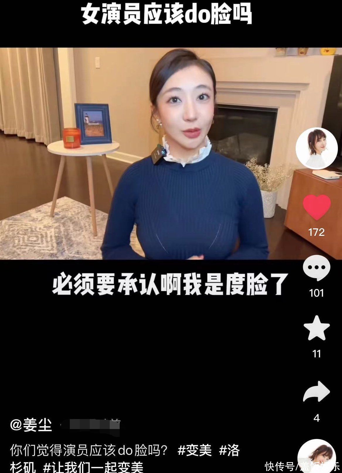 1月10日,演员姜尘承认整容的消息引起了网友关注,她首次在镜头前自曝做过的项目以及整容的原因,坦荡的态度受到了网友力挺。