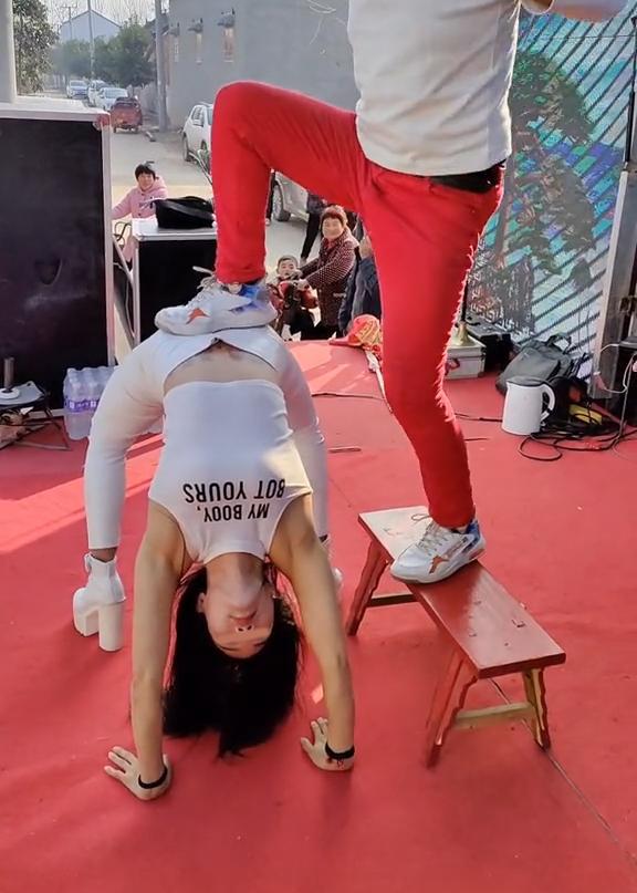女子展示腰力让壮汉随便踩
