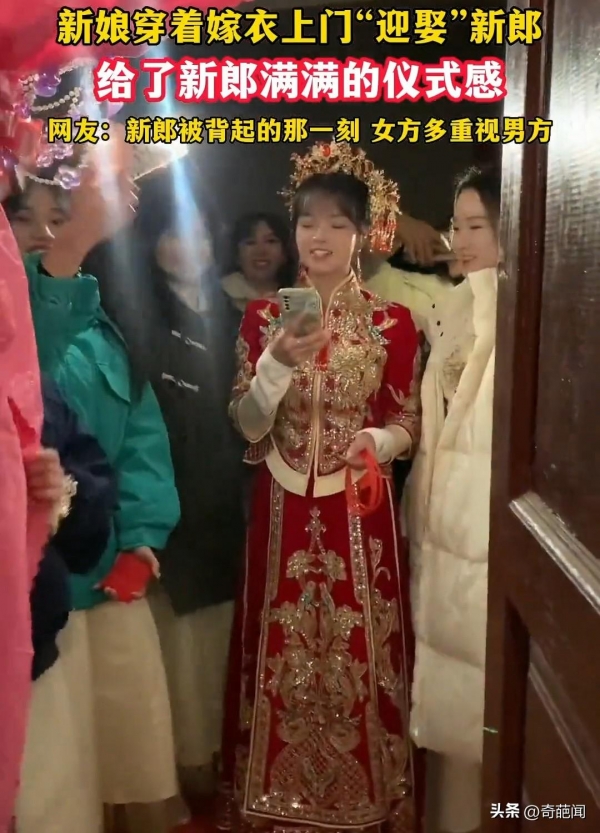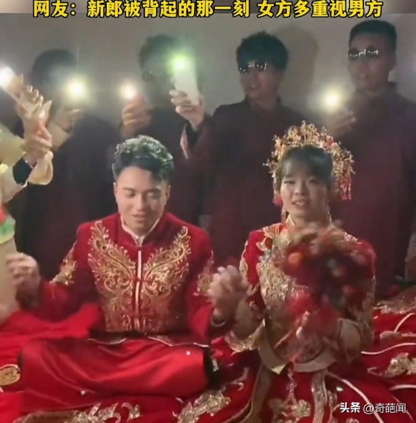 随后在接亲返回途中,新娘也是给足了新郎尊重,不仅全程背着其回家,另外还十分细节地撑起红色的遮阳伞,希望这份喜气能驱赶掉邪佞之气,守护新郎一辈子,最后两人在亲朋好友的祝福下顺利举行完婚礼,对此网友议论纷纷。
