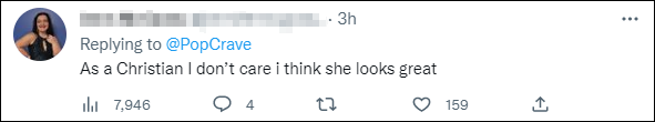 "作为一个基督徒,我不在乎,我觉得她看起来很棒。"