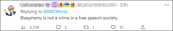 "在一个言论自由的社会里,亵渎神明不应该被认为是犯罪。 "