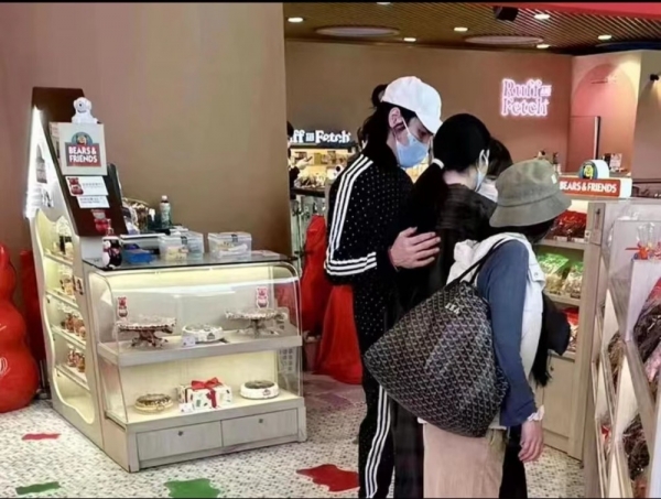 从该网友晒出的照片来看,向佐和郭碧婷站在一家甜品店门口,在给孩子挑零食,向佐紧贴着郭碧婷,伸出一只手亲密地搭在她的背上,似乎在征求她意见,两人的小举动看上去非常恩爱。