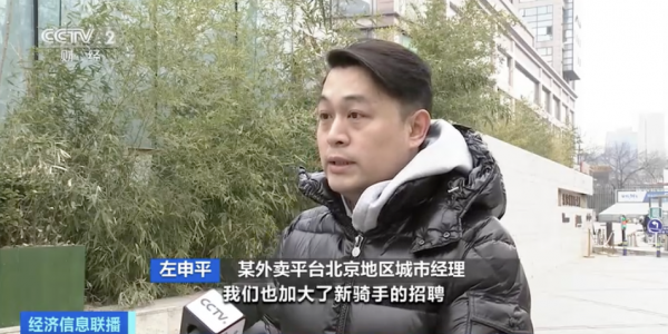 某外卖平台北京地区城市经理 左申平:今年返乡的骑手比较多,从12月份开始加大了新骑手的招聘,北京从12月份到现在,新注册5万名骑手,部分站点,春节期间补贴可以拿到五千元到六千元左右。
