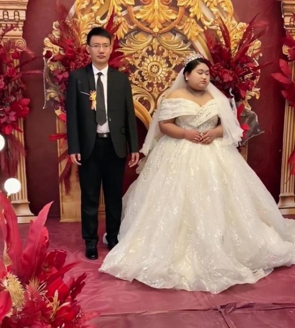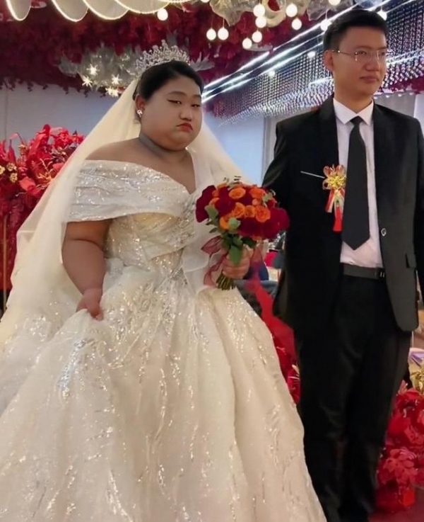 但如果仔细一看,这个新娘貌似不太健康,或许存在一定的病症,胖得多少有些离奇了。