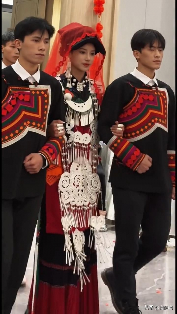 此时只见她一袭彝族新娘礼服,一笑一颦端庄优雅韵味十足, 其身上的嫁衣也是异常吸睛,由多块头饰、衣服、披肩和裙子组成,以银项圈、银项链、银耳环和银手镯等点缀,不仅造型设计十分精致,而且还很雍容华贵,对此网友们纷纷赞叹不已。