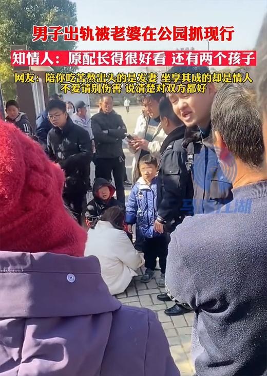 目击者称,女子带着两个孩子将丈夫和他的新欢堵在半路,丈夫的行踪是闺蜜无意中发现的,接到消息后她带上了孩子。