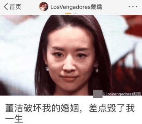 因出轨王大治一事,董洁的"白莲花"形象彻底倒塌,此时王大治的前妻戴璐也来踩她,称她当"小三"插足婚姻破坏家庭。