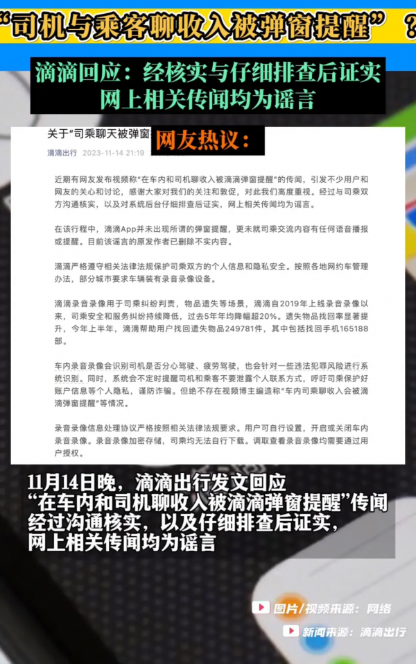 近日,有关"司机与乘客聊收入被弹窗提醒"的消息在网络上广泛传播,引起了广大网友的关注和讨论。针对此事,滴滴公司第一时间发布了声明,对传言进行了澄清。