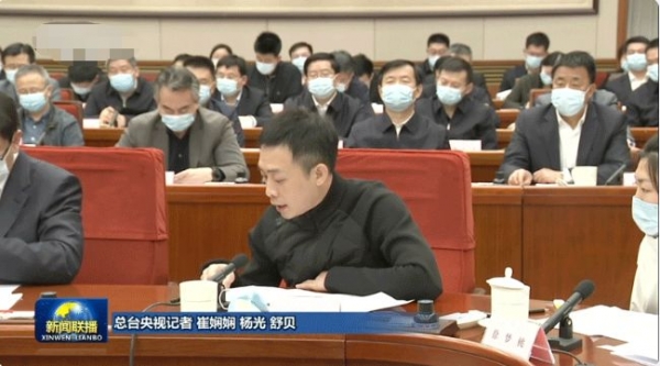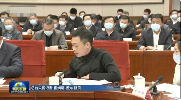 在画面中,张译穿着黑色棉服,打扮十分朴素,他正在对着话筒认真发言,面前摆着纸张,似乎正在做会议记录。