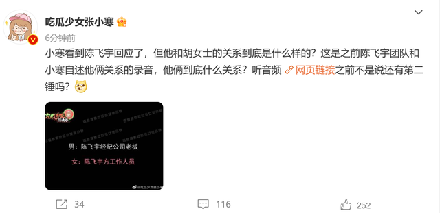 眼看着事情进一步发酵,又有狗仔曝出了陈飞宇工作室近期的录音,谈到了这件事。