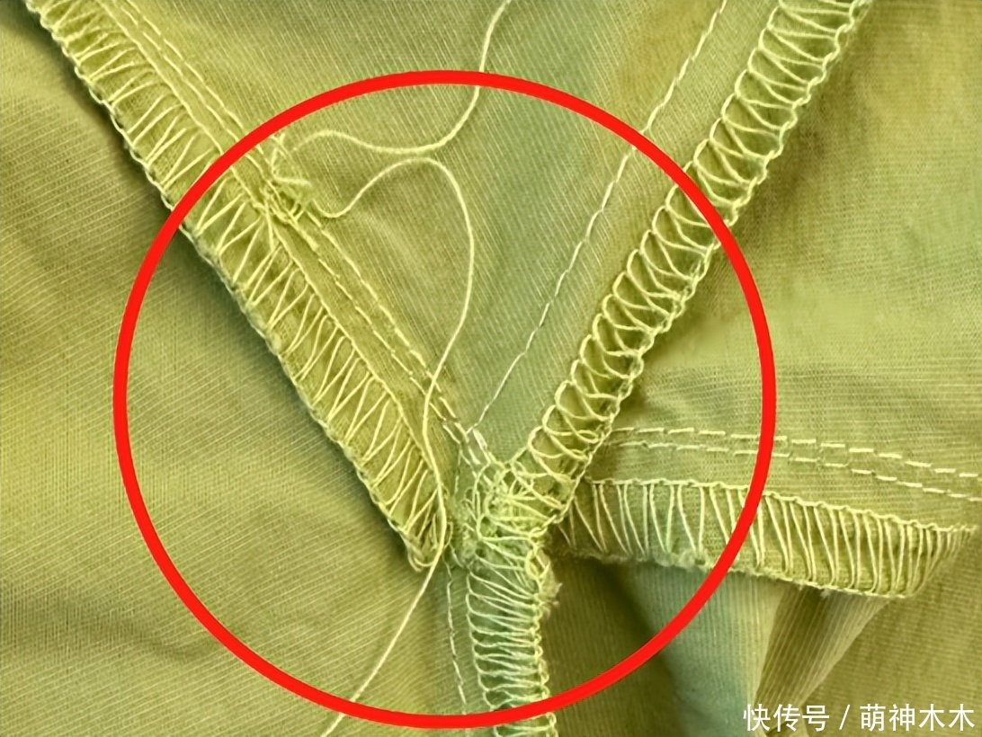 博主先把衣服内面翻转了出来,让大家看这件衣服的车线,发现它不仅断线不干净,随处可见线头,还没有做包边处理,工艺能力特别差劲。