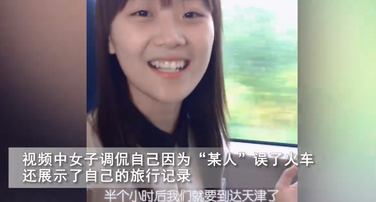 女子冲着镜头,缓缓地述说,她口齿清晰,言语温柔,她自述:因为某人,所以我们误了这趟火车,所以呢我们只能改签坐高铁了,女子虽然是有点埋怨的口气,但是脸上始终带着甜甜的笑意,那份沉浸在爱情中的幸福,隔着屏幕满满地洋溢出来。