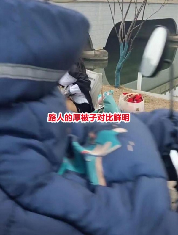 就在女子认真直播的时候,身边恰好一辆电动车驶过,只见路人身前裹着一层厚厚的挡风被,对比之下,女子身上那点儿布料极重的衣服显得完全太过单薄,完全不足以抵御这寒冷的天气。