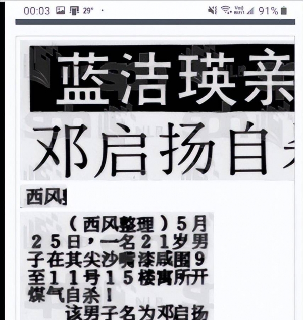 因为出演电视剧《法外情》他结识编剧邓启扬,二人很快的陷入爱河。但是好景不长,二人还没分手的情况下,邓启扬毫无预兆的在家中开煤气自杀。这个打击让蓝洁瑛久久不能释怀,直到钟保罗的出现。