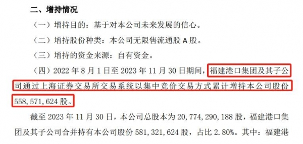 2023年12月10日,兴业银行发布了一则增持股份的情况公告,主角还是福建港口集团。该公司在当年8月至11月期间累计增持兴业银行5.59亿股股份,加上此前已经持有的股数一共是5.81股,占兴业银行股本总数的2.8%,大概率在去年四季度成功跻身前十大股东。