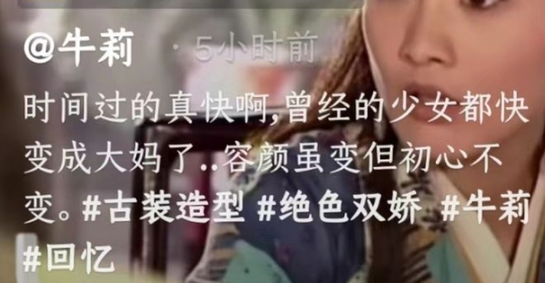 牛莉配文写道:"时间过的真快啊,曾经的少女都快变成大妈了……容颜虽变但初心不变",一番话语正能量十足,看来牛莉也是个不忘初心的人。