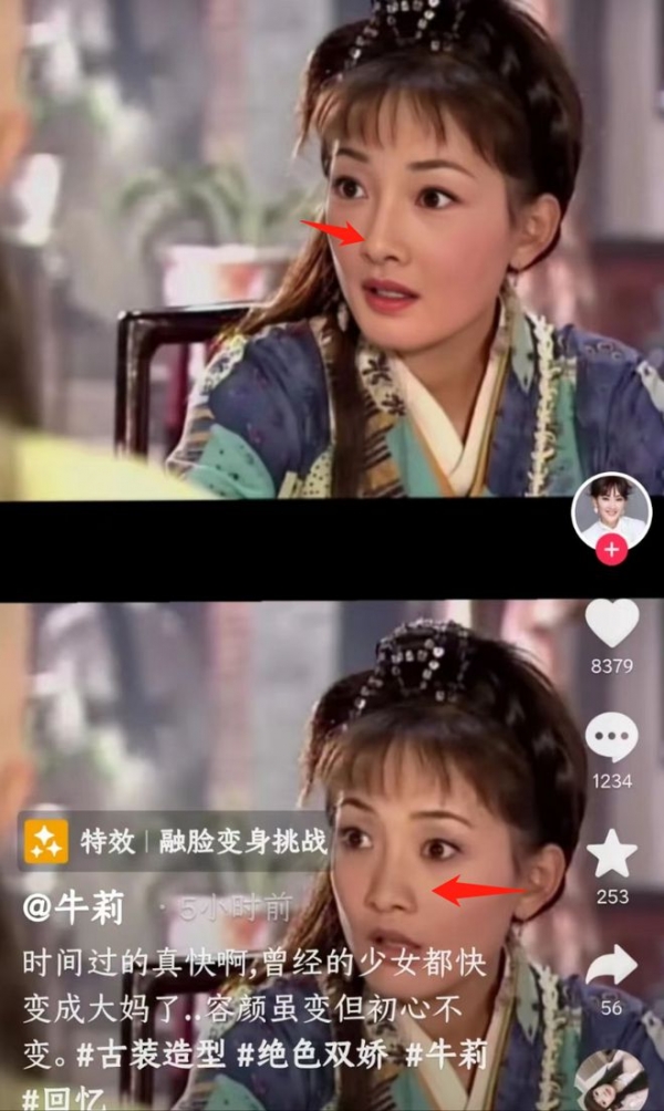 视频中,牛莉紧跟潮流,玩起了最近很火的变脸特效,而她要变的正是在古装剧《绝色双娇》的角色,扬州城新任知府秦中玉之女秦采青,该剧由张庭、焦恩俊联合主演,名气非常大。