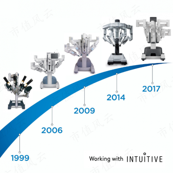 直观外科(Intuitive Surgical)及旗下的达芬奇手术机器人产品的先发优势。