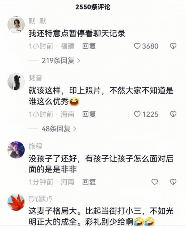 看到这一幕,就能够感受到原配到底有多气愤了,伤敌一千自损八百也在所不惜,就要搞臭他们两个人。