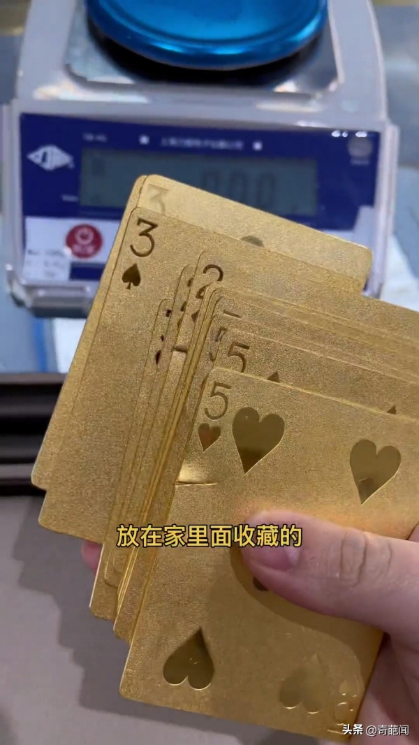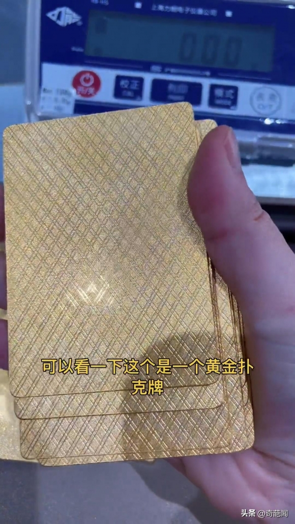从拍摄的视频显示,画面中女子手中的每张扑克牌都是用纯金打造的,在灯光的照射下非常耀眼与精致,只有几张出现了略微磨损情况,不过这丝毫不影响它的价值。