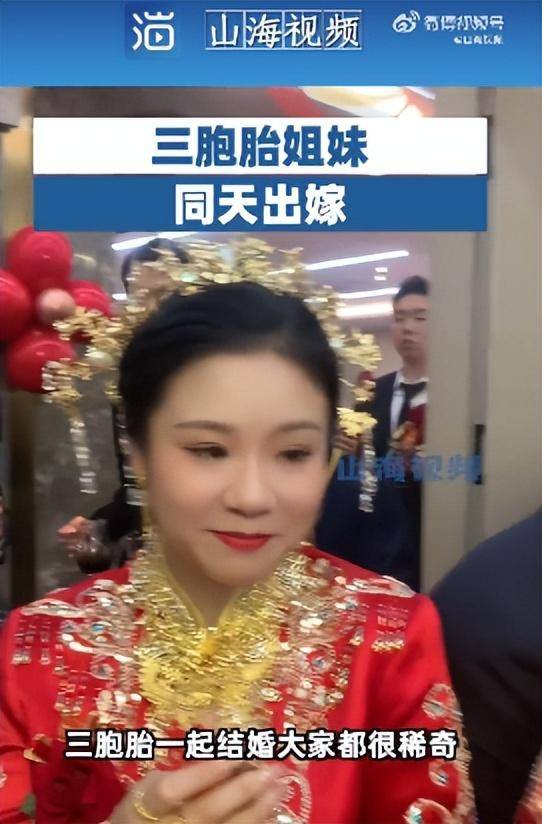 蔡女士表示三胞胎一起结婚也是很稀奇,新娘一出来很多人都拍照,三胞胎长得一模一样,很多邻居都很难分清。