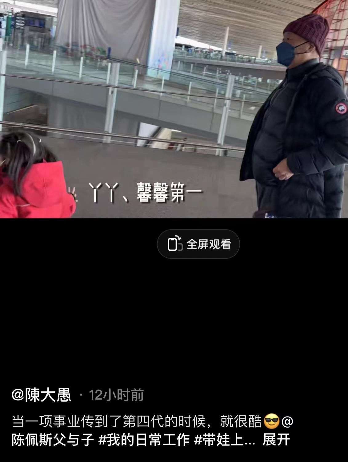 3月2日,陈佩斯的儿子陈大愚晒出视频,分享自己与父亲还有女儿们一块出差拍广告的画面。值得一提的是,这也是陈佩斯祖孙三代首次同框。