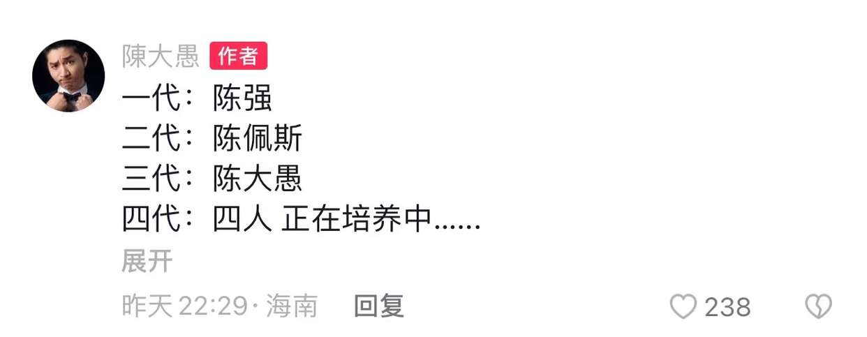 在评论里,陈大愚还特意写上了"第四代:四人正在培养中",看来他似乎打算让两个女儿和一对双胞胎儿子走上影视表演之路。