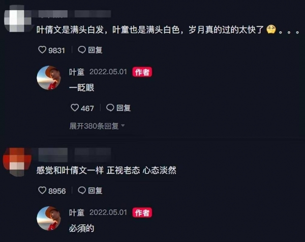 看见满头白发的叶童,不少看客们感慨起了童年偶像直视衰老时的洒脱,对此,叶童更是肯定的回答"必须的",言语中满是豁达。