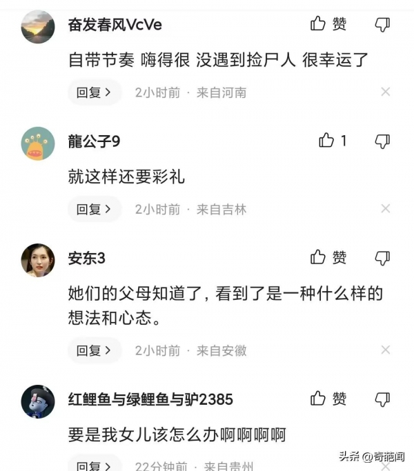 有网友评论说,一个女孩,这么不注重安全,到时后悔晚矣!