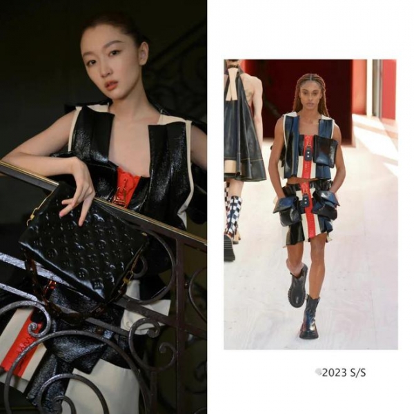 相比之下,倒不如同场的周冬雨更为抢眼。因为周冬雨身材纤细单薄,气质上也是灵动轻盈,可以轻松驾驭这种充满设计感的皮质套装,厚重的材质能够平衡她的单薄身材。她自身的时尚气质也能完美消化这款造型。虽然周冬雨这款造型与刘亦菲之前的封面造型撞车,貌似周冬雨更能展现出这款造型的格调。
