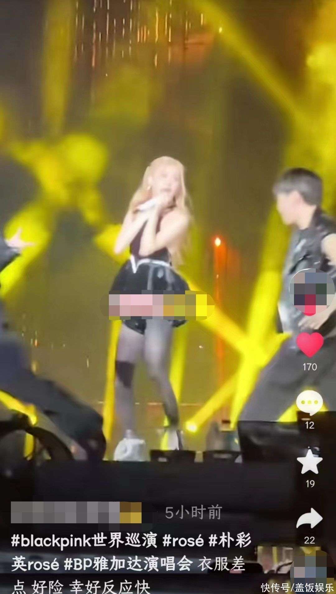 值得注意的是,朴彩英唱着唱着就开始摸向脖子后面的带子,似乎并不舒适,她发现带子开了以后,迅速捂起胸口,反应十分迅速。