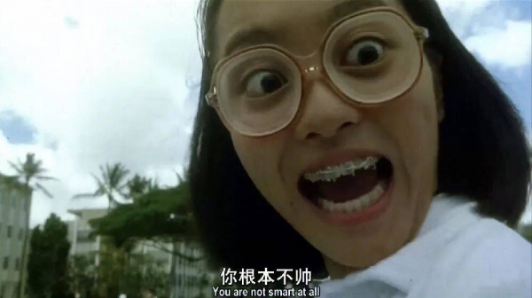 《恋爱上上签》中的张柏芝,顶着彪悍的爆炸头和野生眉。
