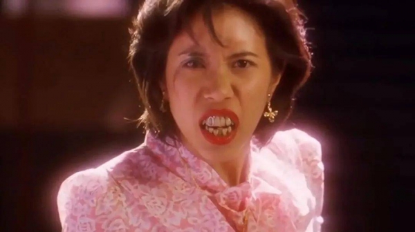 电影《食神》中,她演的"火鸡姐"不仅皮肤黝黑、龅牙,脸上有一道明显的伤疤,还化着艳俗的眼妆。