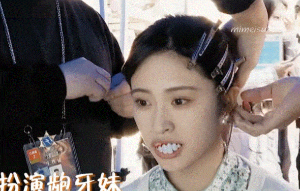 无一顶着精致的妆发,要么嘴里塞一个同款亮白龅牙套,草草了事;