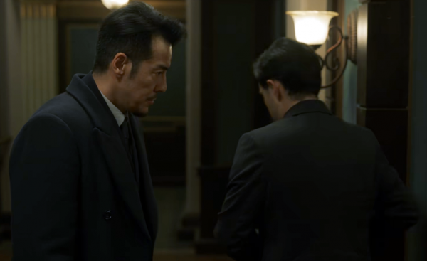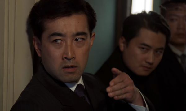 藏有秘密文件的房间内,男子在紧张的看着手中的文件,外面日本人及其手下,已经子弹上膛,他焦急的看了一下手表。