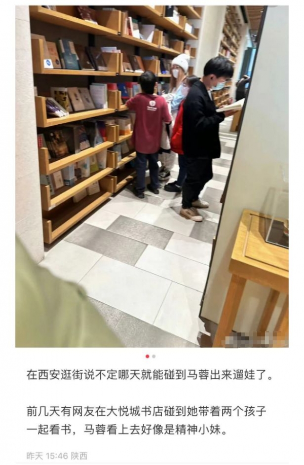 近日,有网友在西安某书店偶遇了马蓉,当天马蓉还是带着一双儿女出来的,看来就是与王宝强轮流照顾孩子,想必关系应该也是缓和了很多,并不会因为照顾孩子的问题有争执和矛盾,毕竟孩子们也大了。