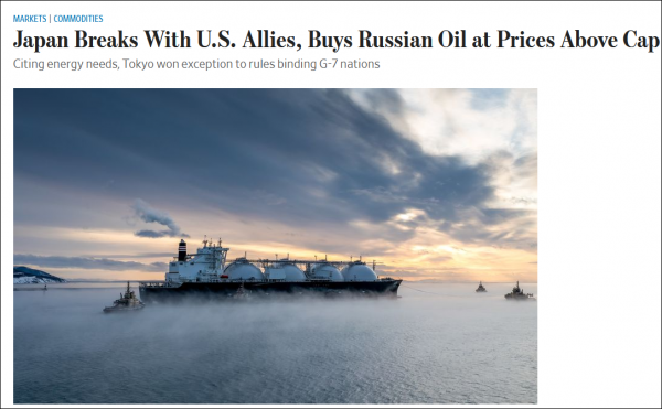 《华尔街日报》:日本以高于限价购买俄油,与美国盟友分裂